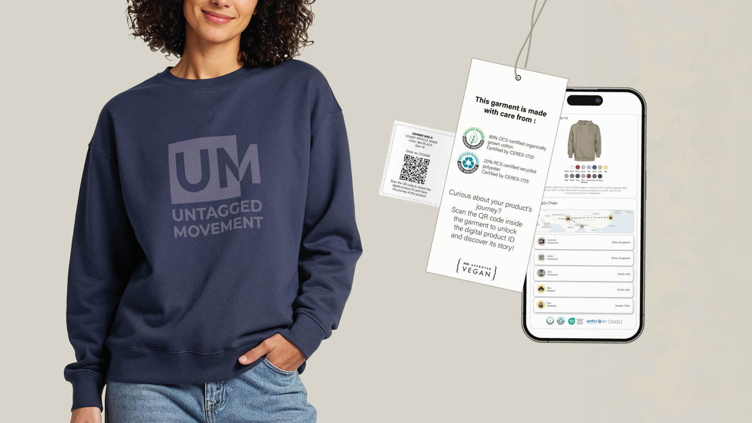 Untagged Movement vinnur eingöngu með OCS-vottaðri lífrænni bómull og RCS-vottaðri endurunninni pólýester.