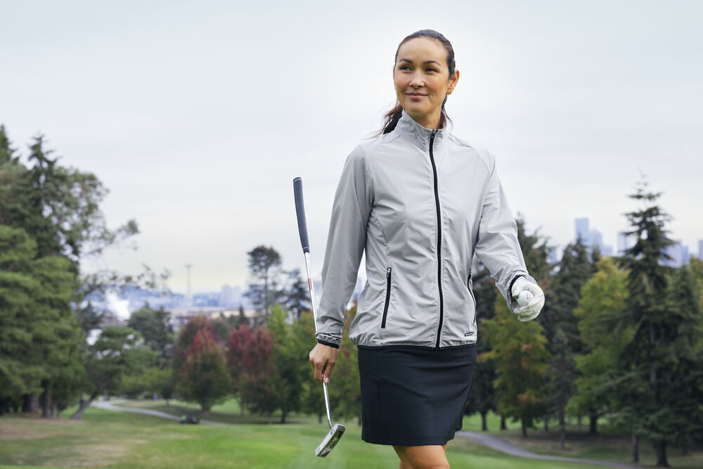 Technical jacket in an extremely stretchy lightweight fabric that gives you great freedom of movement. This jacket in our groundbreaking WeatherTec fabric is designed to be worn during outdoor adventures when you need protection from wind and light rain. The clean lines and sporty silhouette offer a sleek and stylish look that seamlessly transitions from the golf course to casual outings. Finished at the sleeves and hem with elasticated hem that tightens and protects you from changing weather.